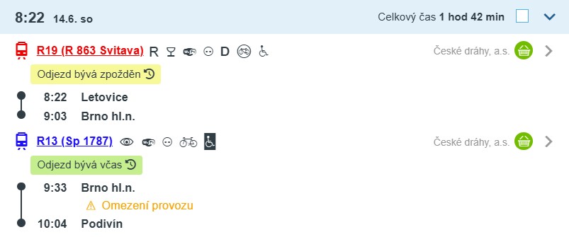 Společná skupinová jízdenka je zakoupena ze stanice Letovice, společný odjezd vlakem je pouze ze stanice Letovice. Vlak R 863 Svitava odjíždí v 8:22 hodin z Letovic. Příjezd na nádraží Podivín v 10:04 hodin.