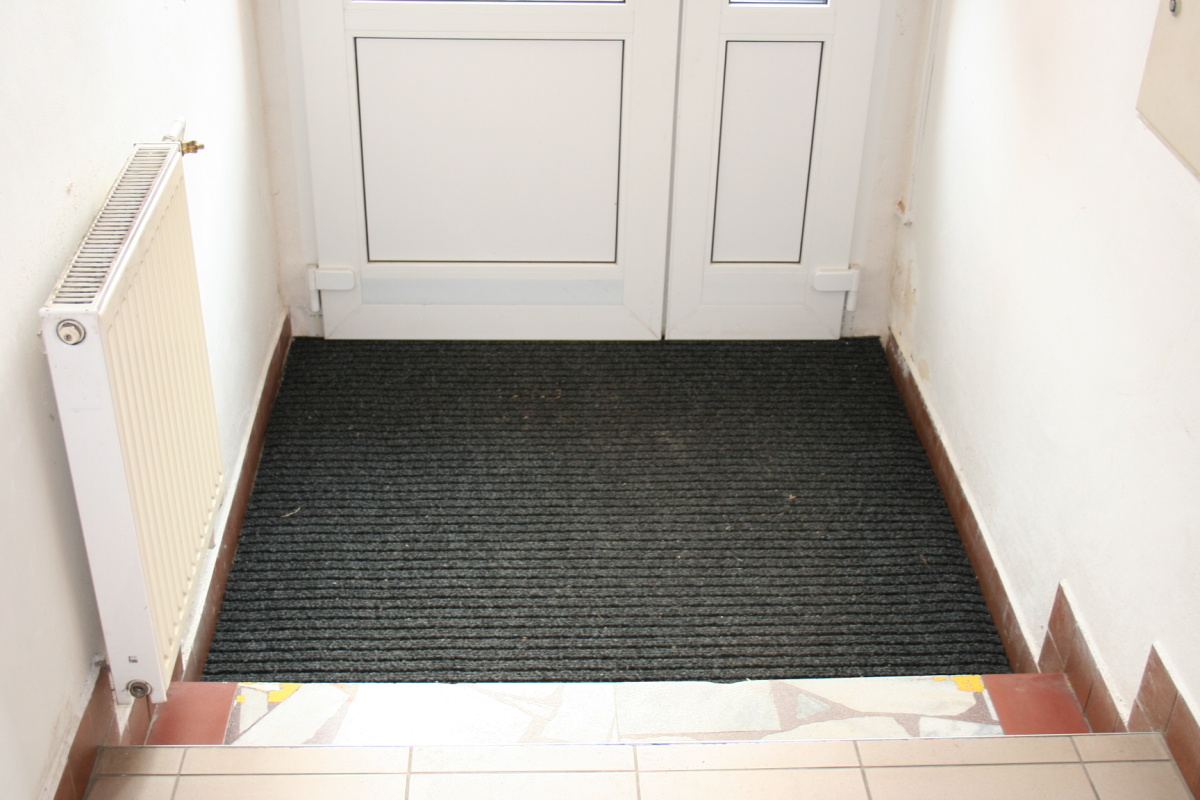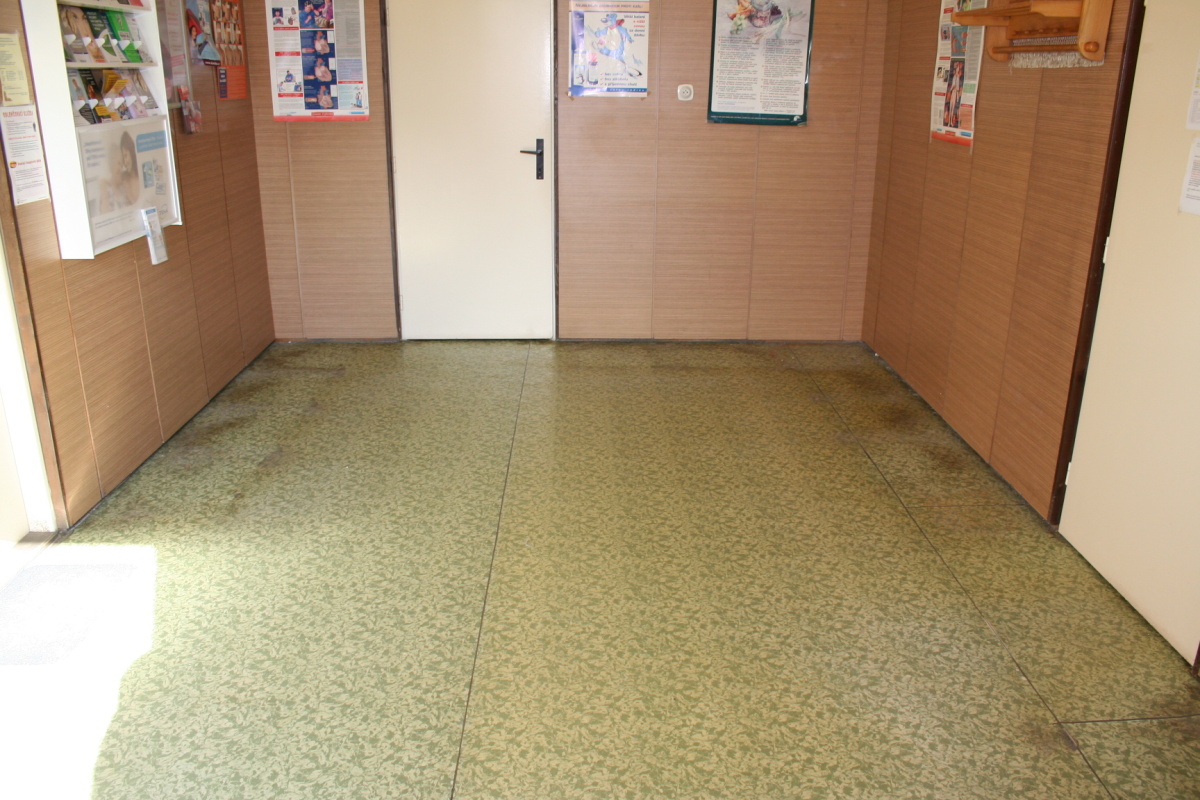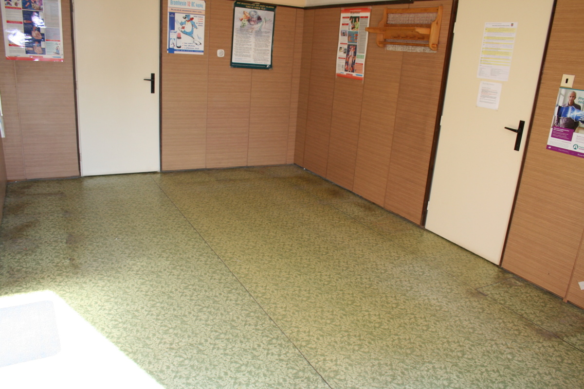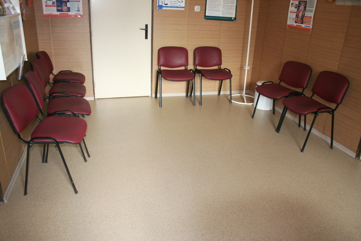 V čekárně praktického lékaře v budově zdravotního střediska jsme nechali zrenovovat podlahovou krytinu. Původní podklad byl přebroušen, vyspárovaly se trhliny, pak se nanesla vyrovnávací stěrková hmota a mohlo se pokládat a lištovat. U obou vstupních dveří byly doplněny tolik potřebné čistící zóny.