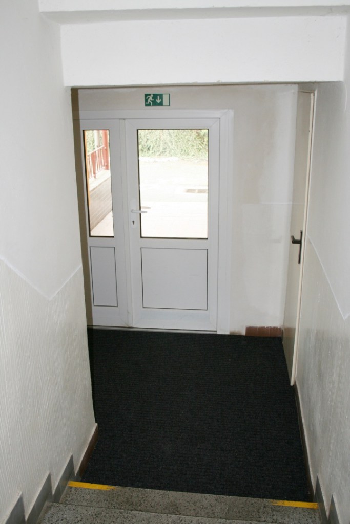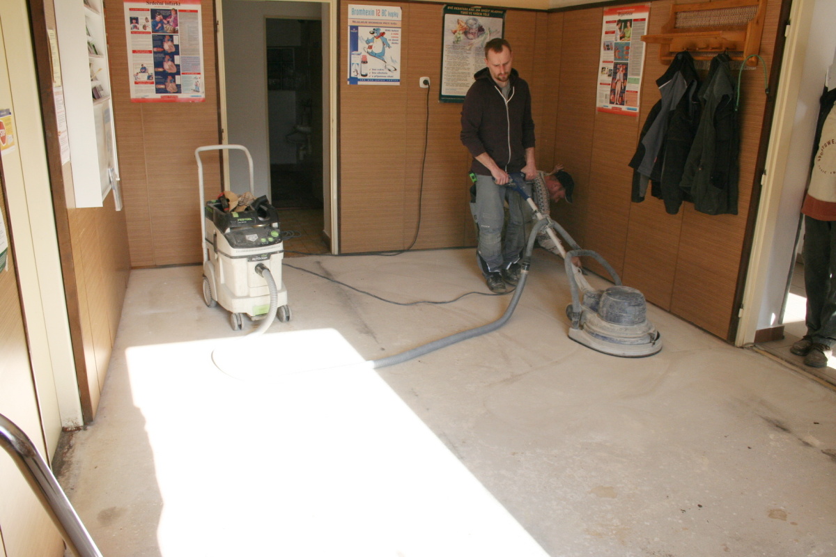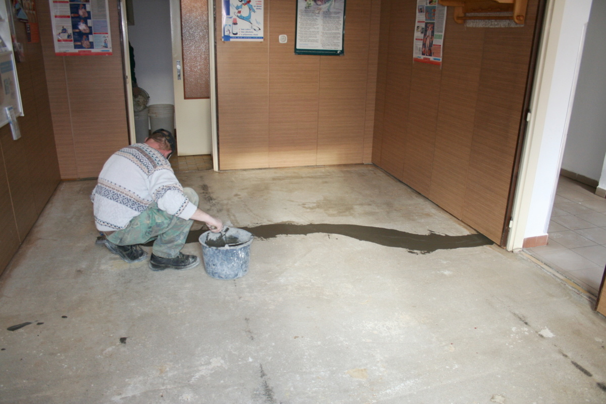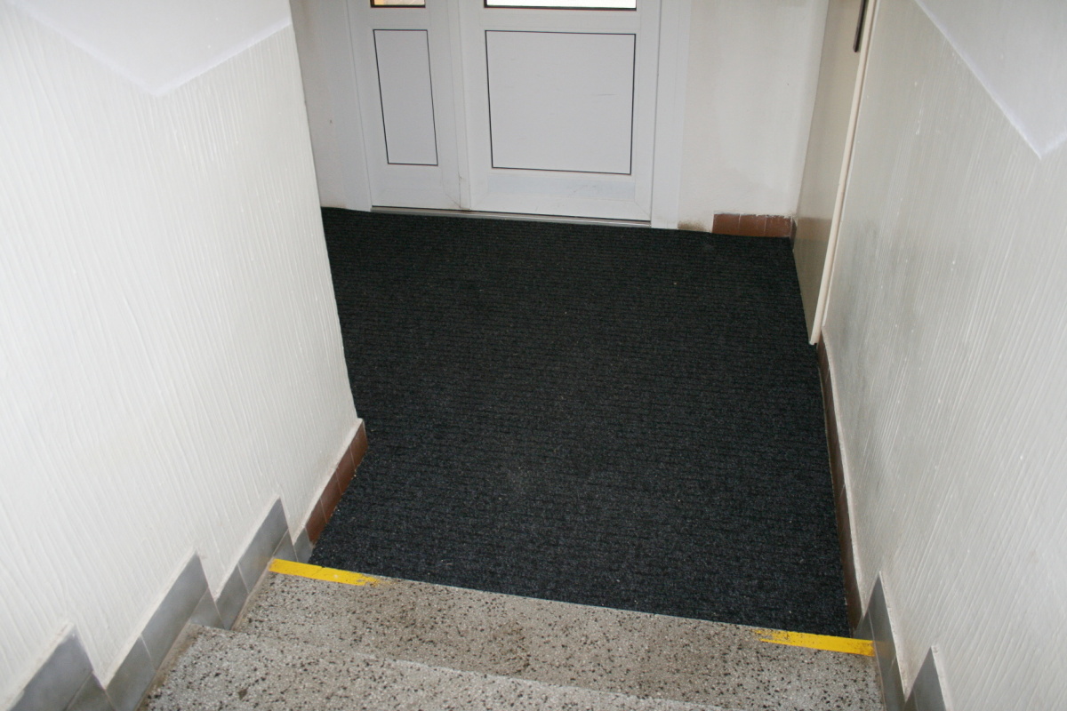 V čekárně praktického lékaře v budově zdravotního střediska jsme nechali zrenovovat podlahovou krytinu. Původní podklad byl přebroušen, vyspárovaly se trhliny, pak se nanesla vyrovnávací stěrková hmota a mohlo se pokládat a lištovat. U obou vstupních dveří byly doplněny tolik potřebné čistící zóny.