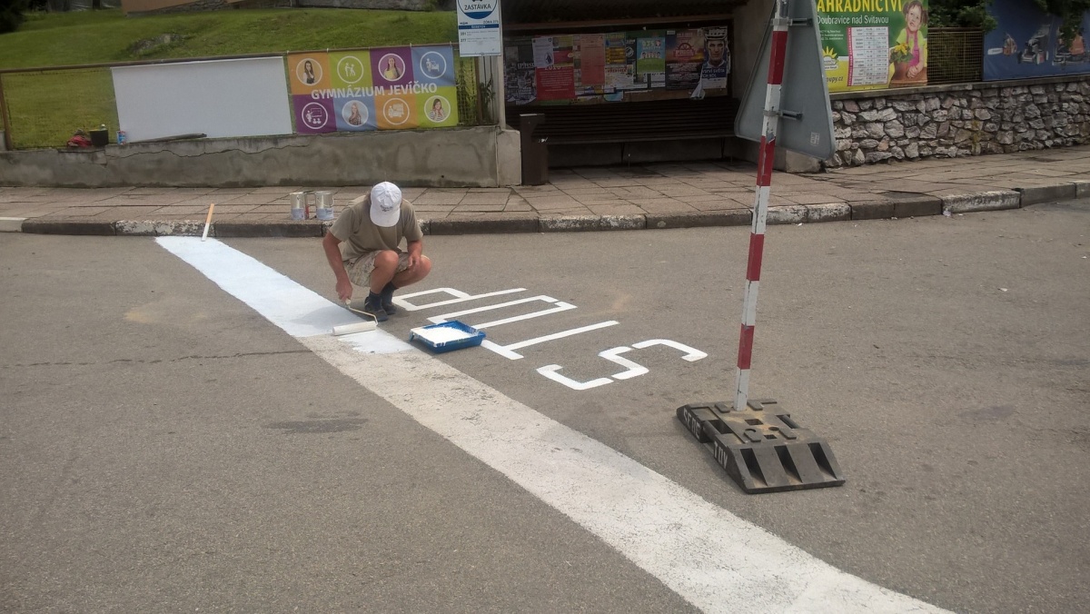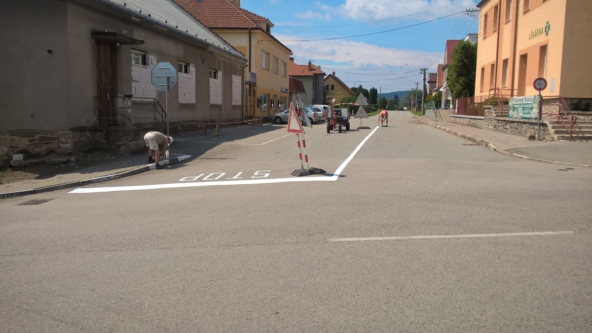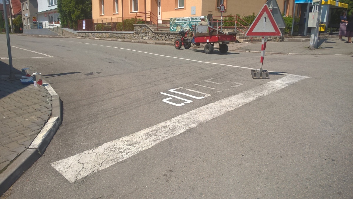 Obnova vodorovného dopravního značení na hlavní křižovatce