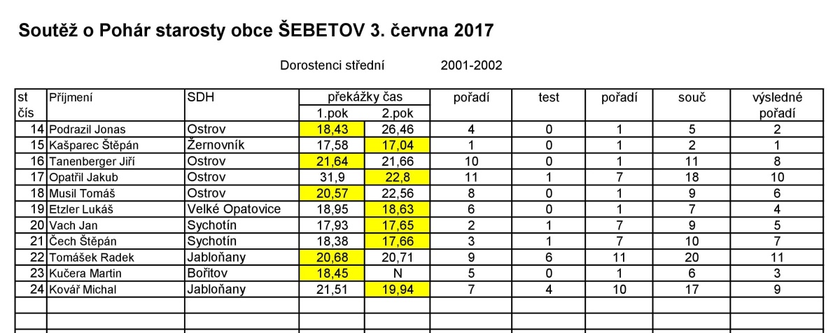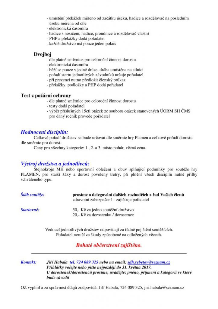 Soutěž hasičské mládeže a dorostu O pohár starosty obce