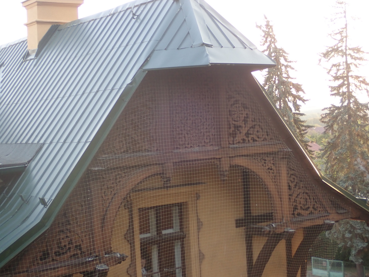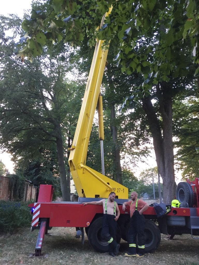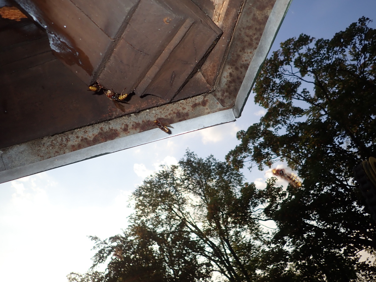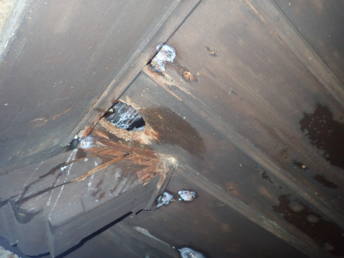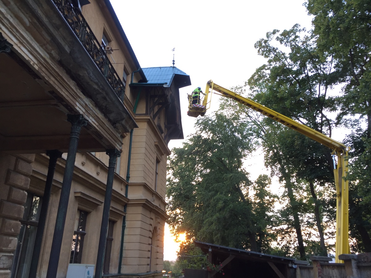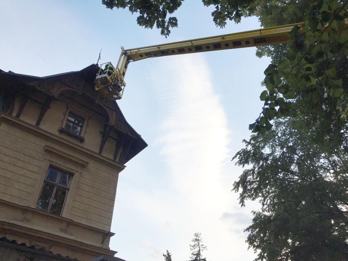 Za pomoci automobilové plošiny, provedeno důkladné vystříkání prostoru kde se nachází hmyz. Poté PUR pěnou ucpání všech děr ve dřevě, které je značně zničeno hmyzem a stářím.