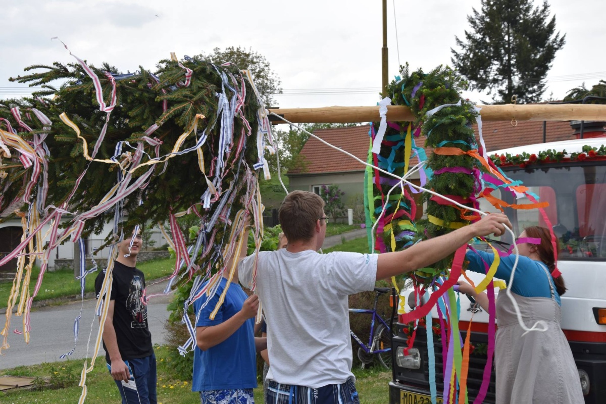 Stavění máje v Šebetově 1. května 2018