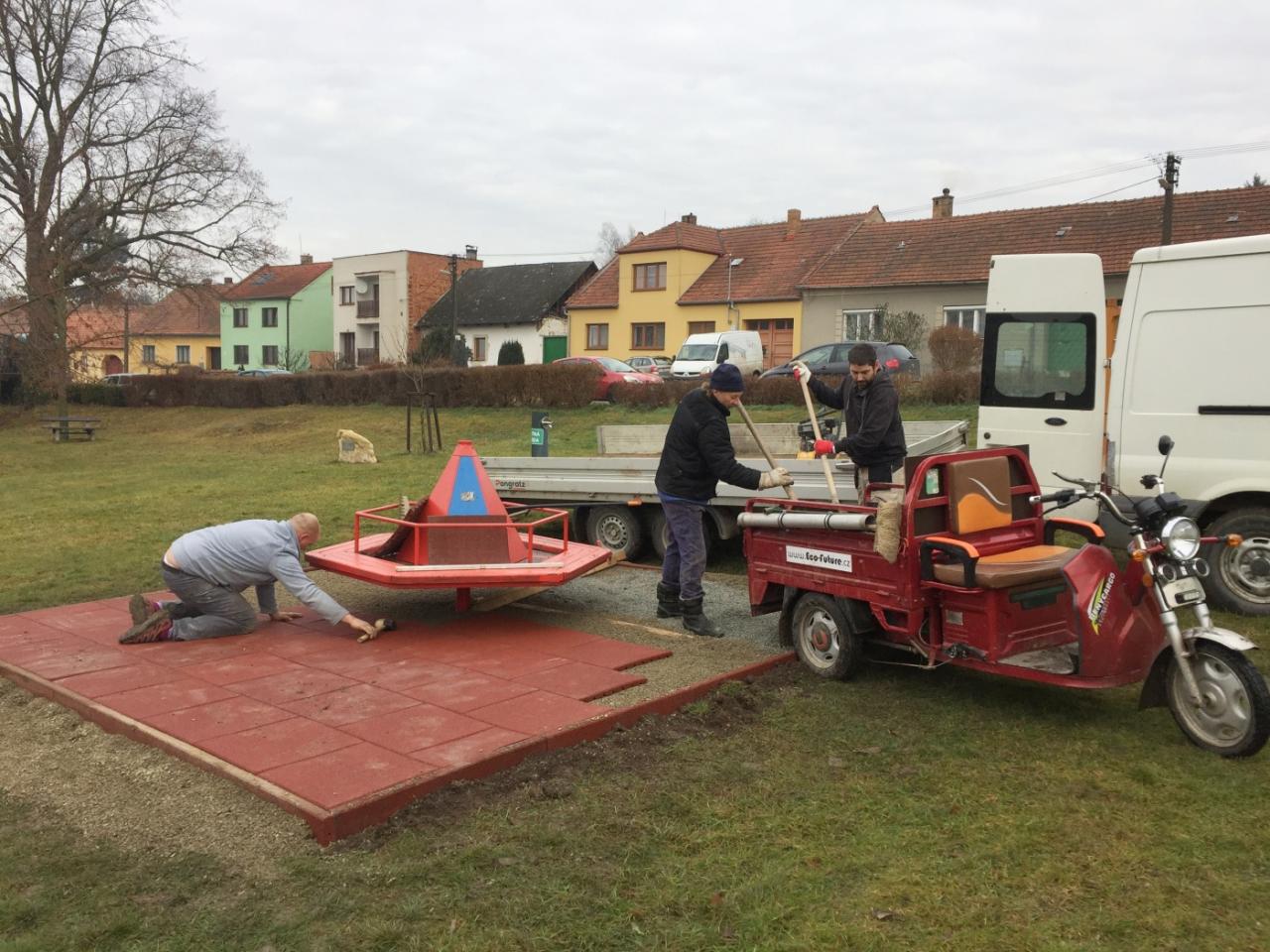 Montáž dopadových ploch na Návsi a na Kopci