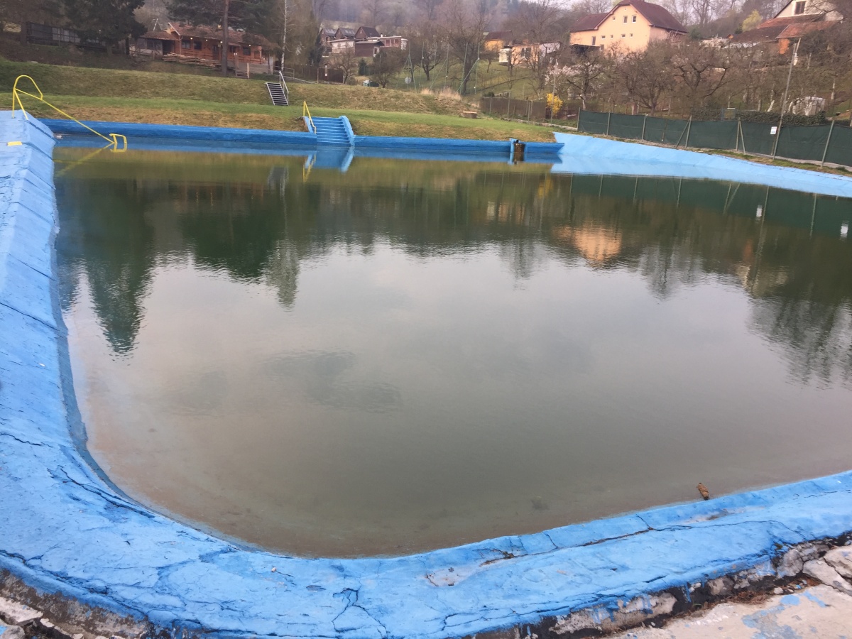 Příprava nádrže byla zahájena od 10. dubna 2019. Po třídenním čištění stěn nás čeká spárování trhlin, oprava osvětlení a obnova nátěru.