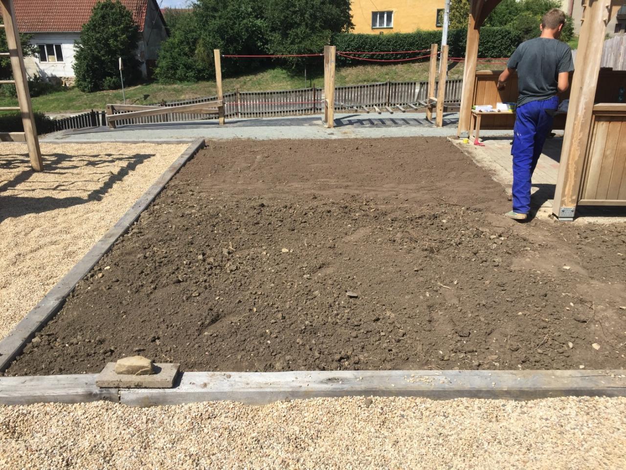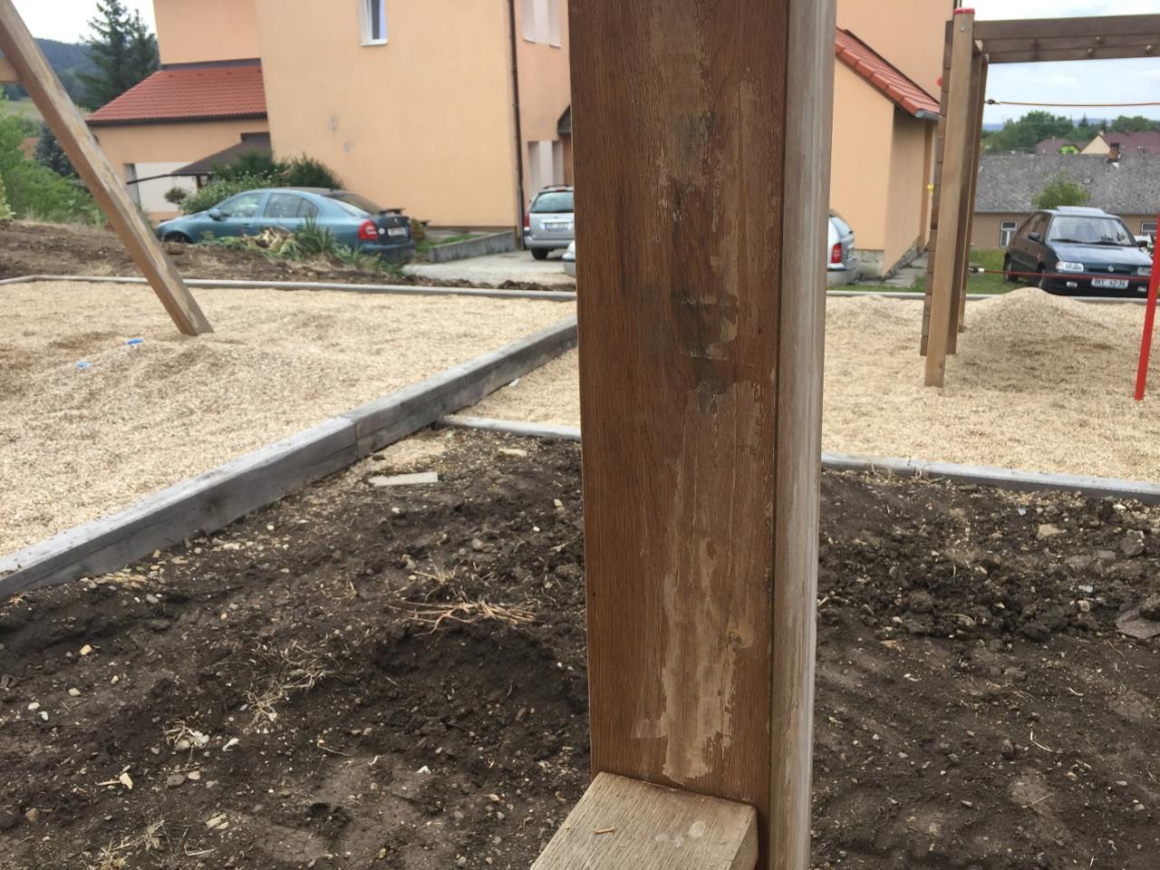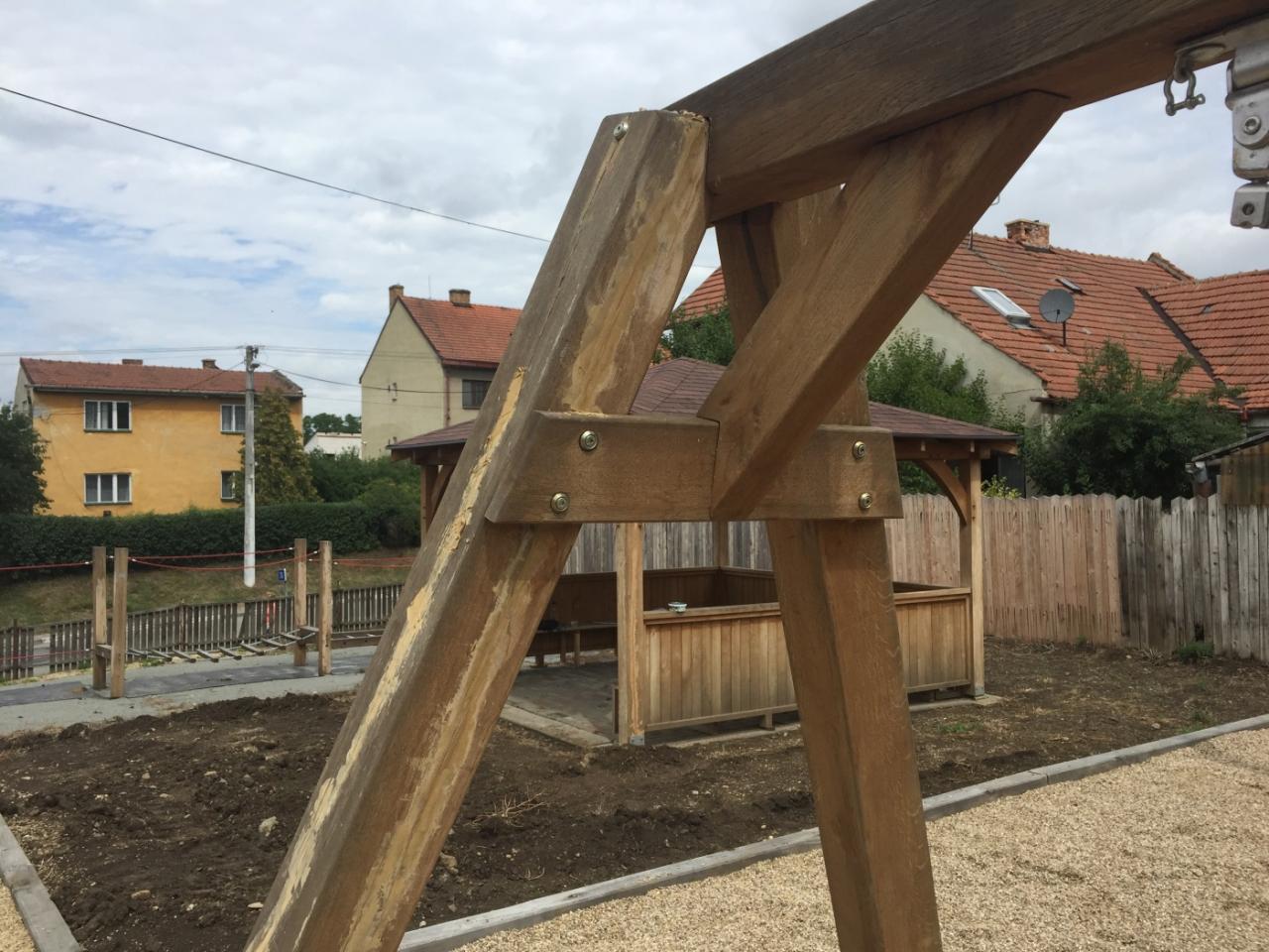 Provádělo se naimpregnování prvků, tmelení prasklin, finální nátěry a terénní úpravy včetně osetí ploch travním semenem.