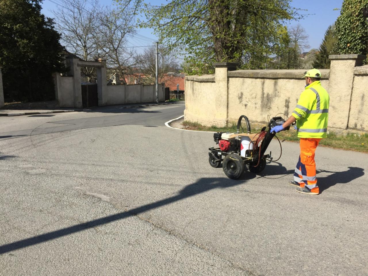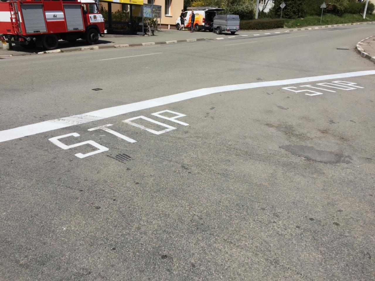 Obnova vodorovného značení na vozovkách křižovatky a kolem zámeckého parku