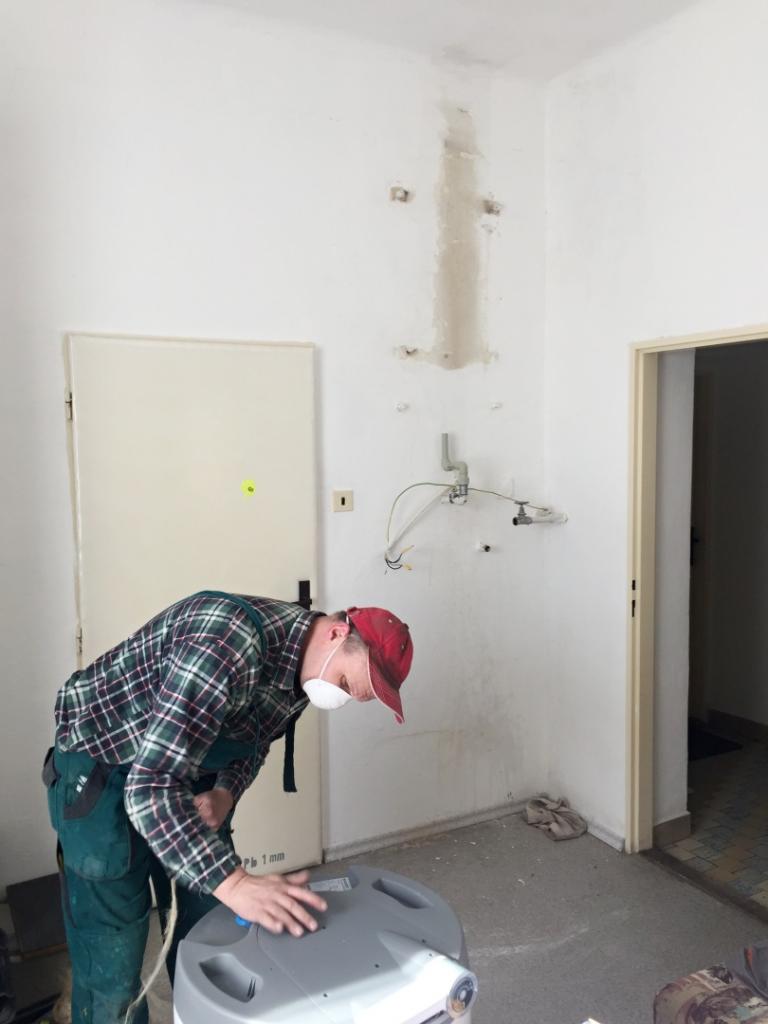 Výměna bojleru v pondělí 23. března 2020. Původní ohřívač prorezivěl a začal prokapávat přes elektroinstalaci. Ohřívače jsou na středisku důležité nejen pro běžný provoz, ale také pro večerní úklid a sanitaci prostor.