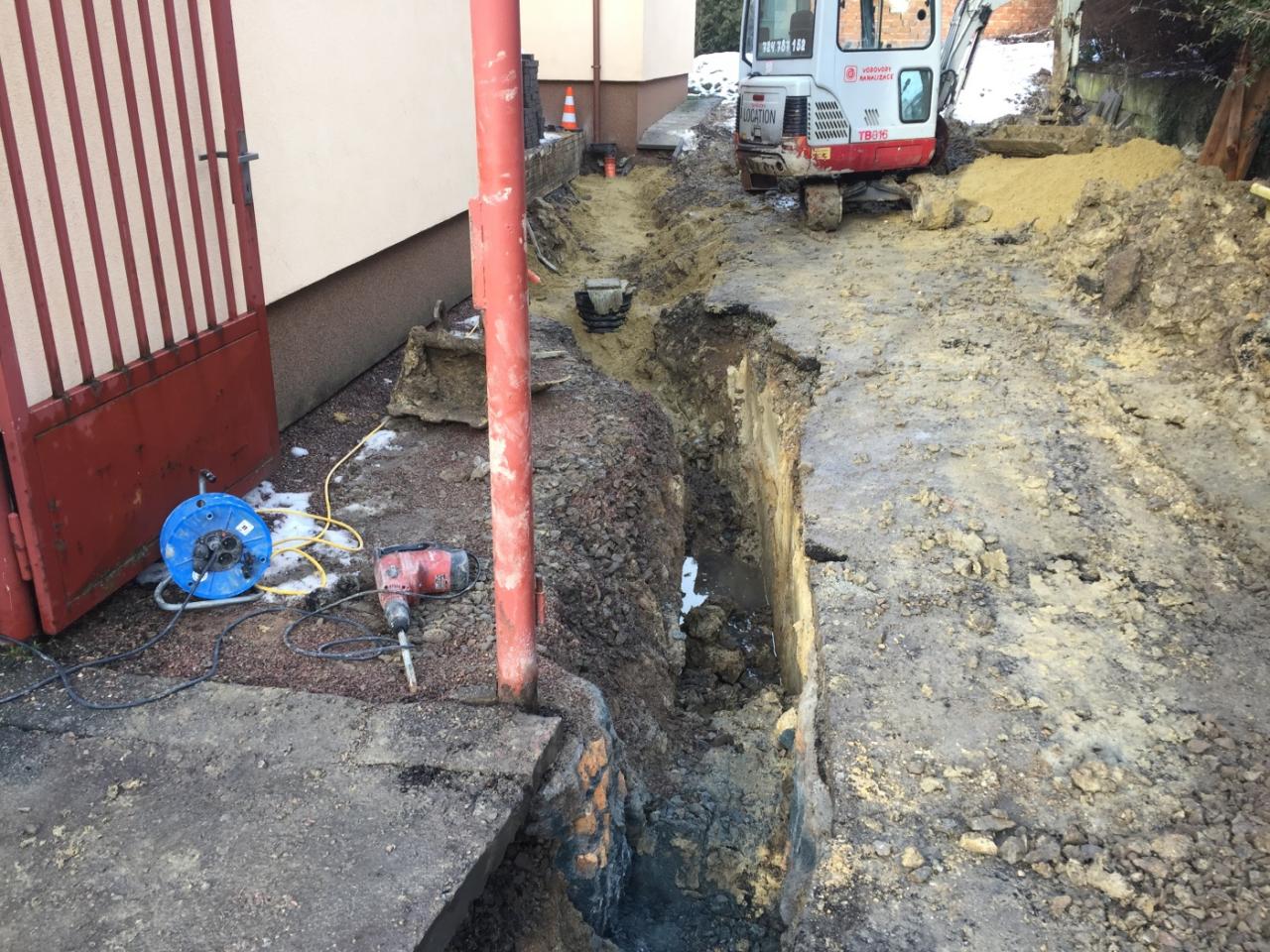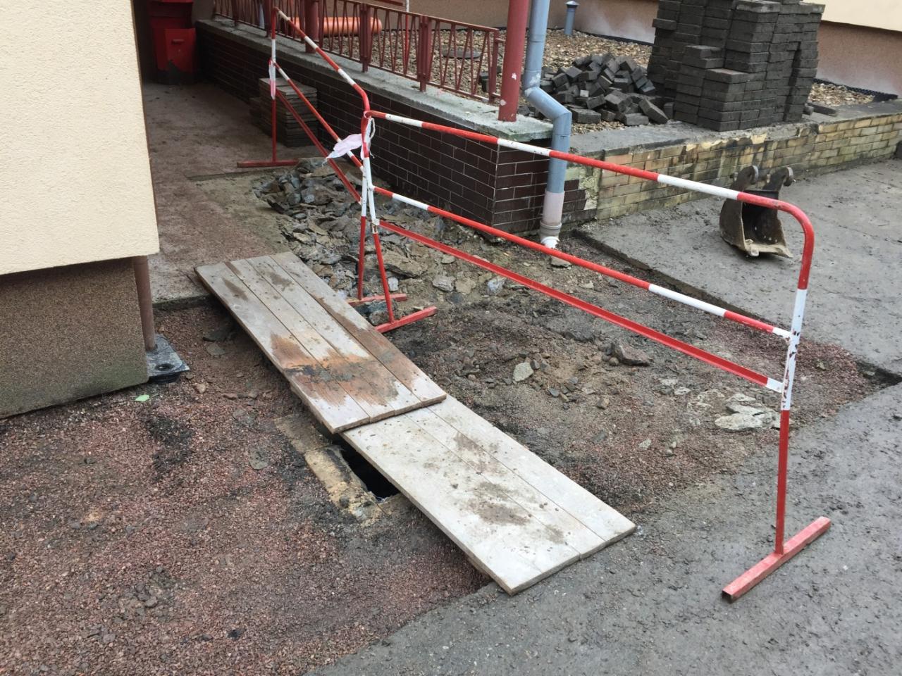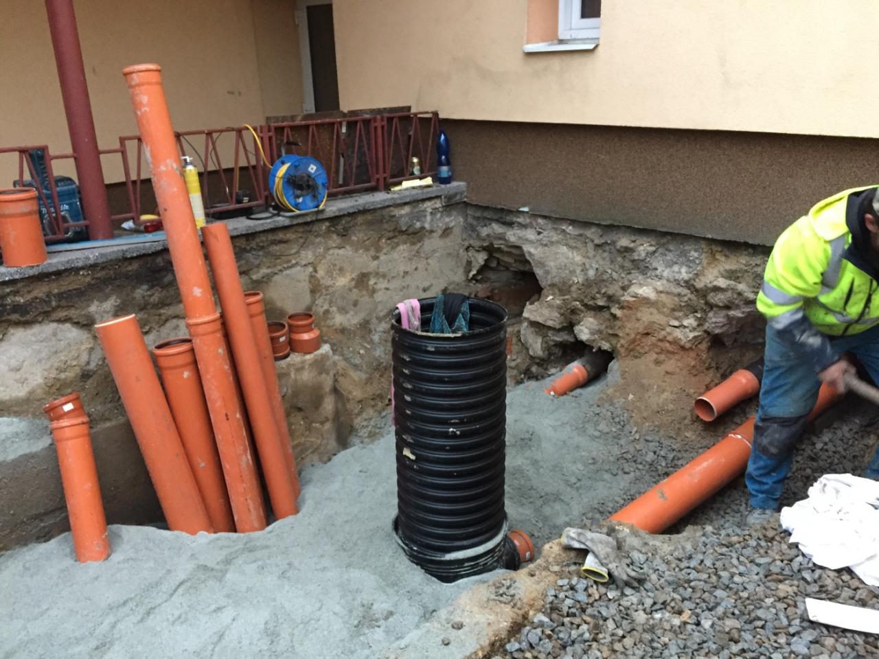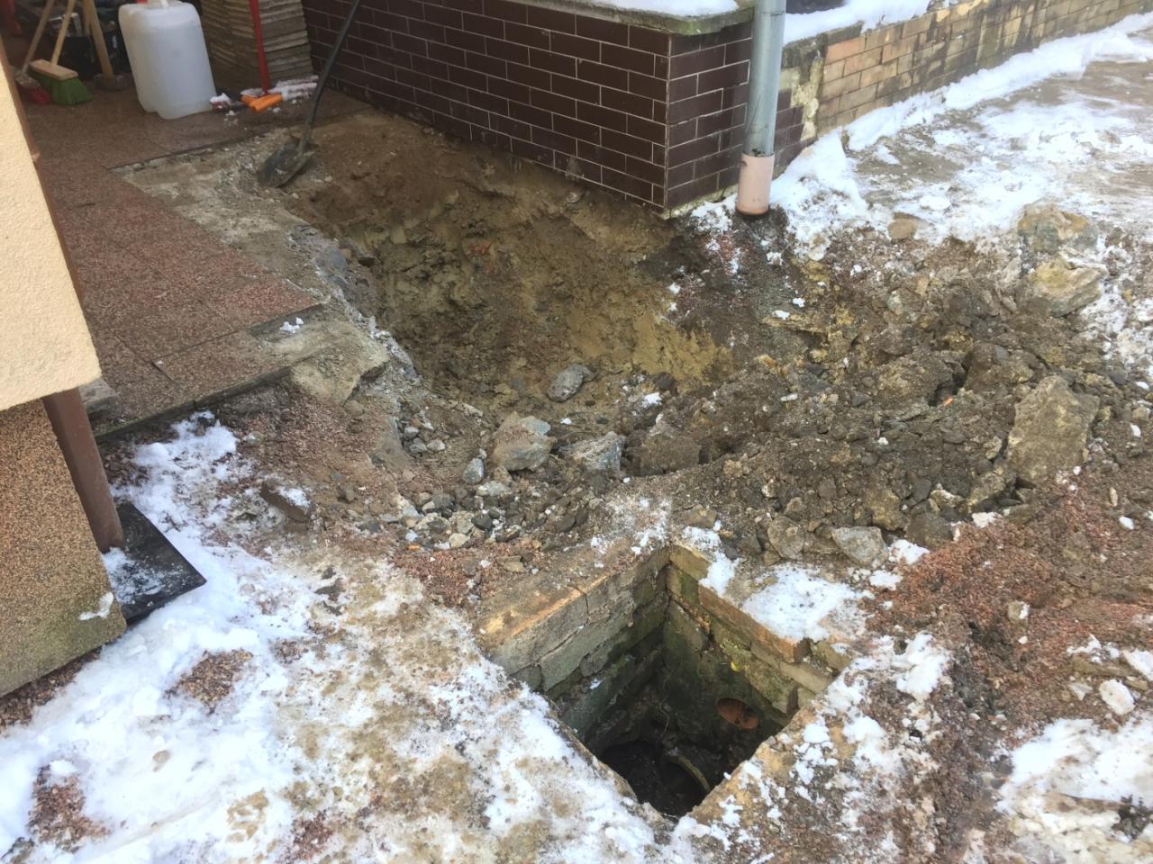 Práce na havárii odpadového potrubí zdravotního střediska probíhaly od listopadu 2020 do ledna 2021.