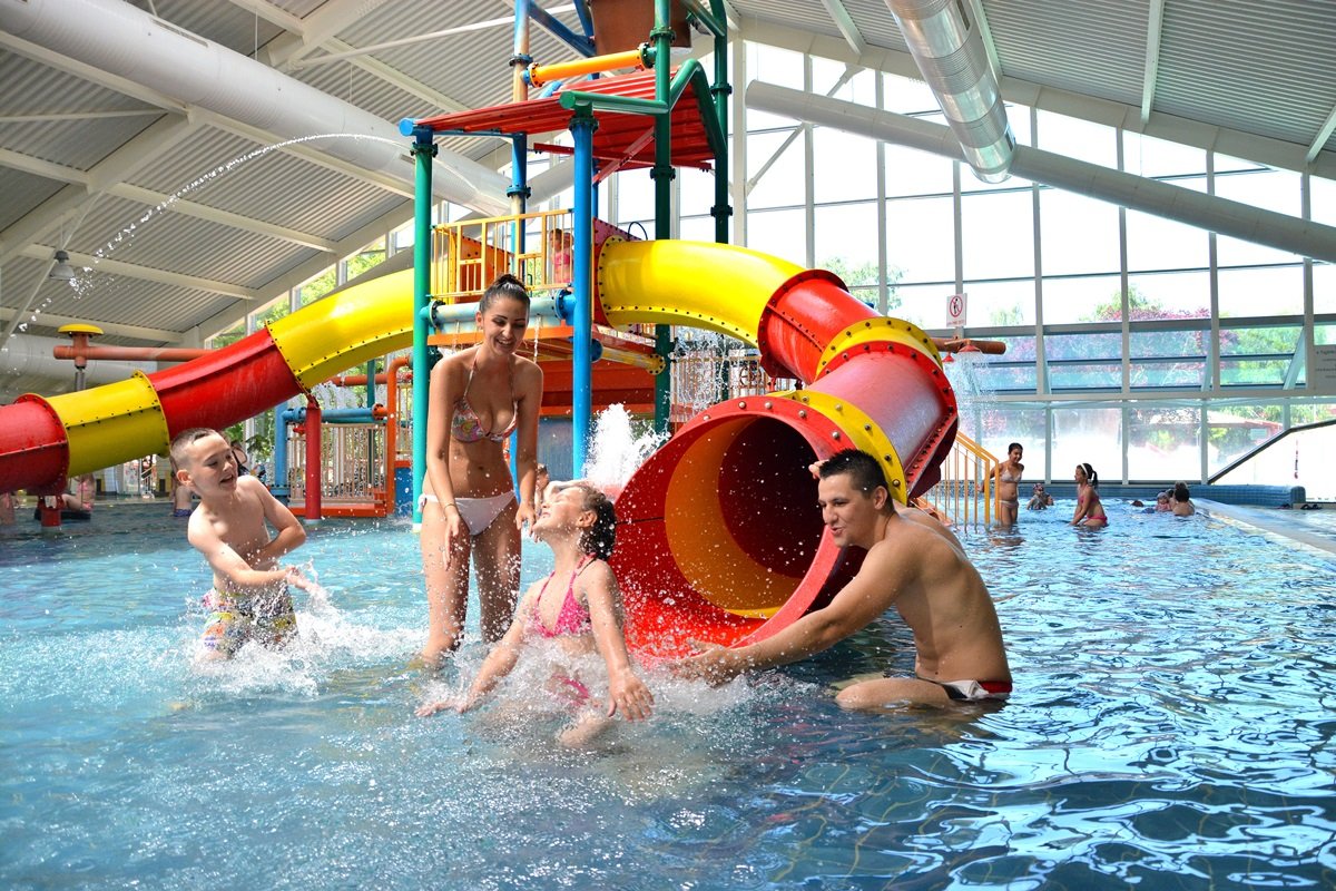 Areál nabízí 6 vnitřních bazénů s teplotami vody 30 - 38°C. Všechny vnitřní bazény i tobogány jsou otevřeny celoročně.