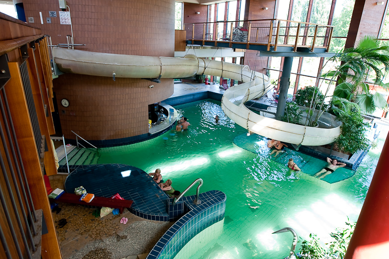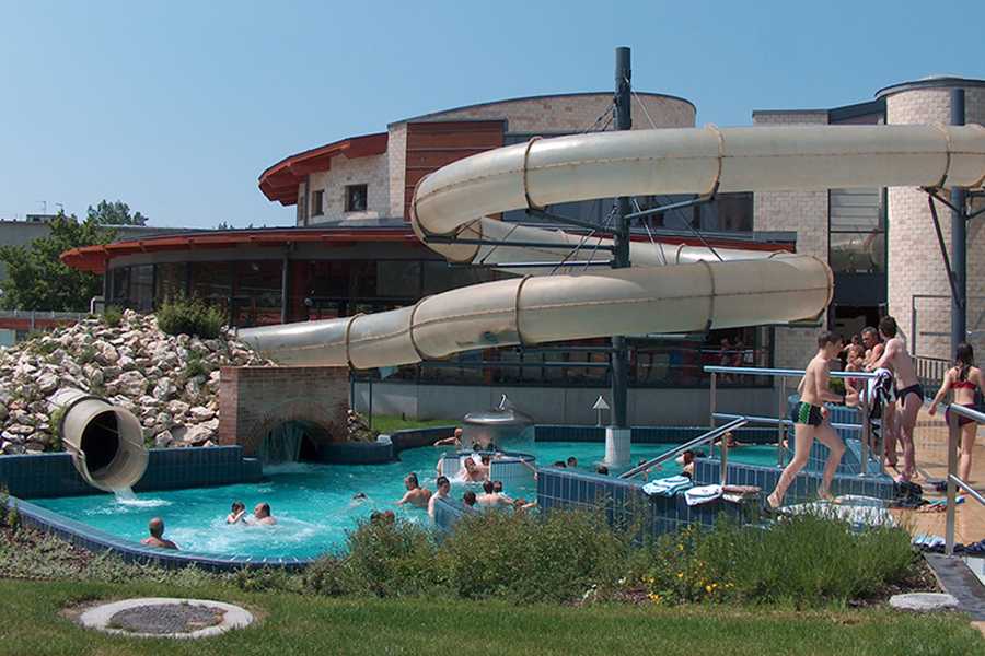 Areál lázní Rába Quelle v Győru nabízí bazény s termální vodou s průměrnou teplotou vody 32 až 37 stupňů Celsia a pět „dobrodružných“ bazénů, venkovních i vnitřních s 36 a 68 metrů dlouhými tobogany.