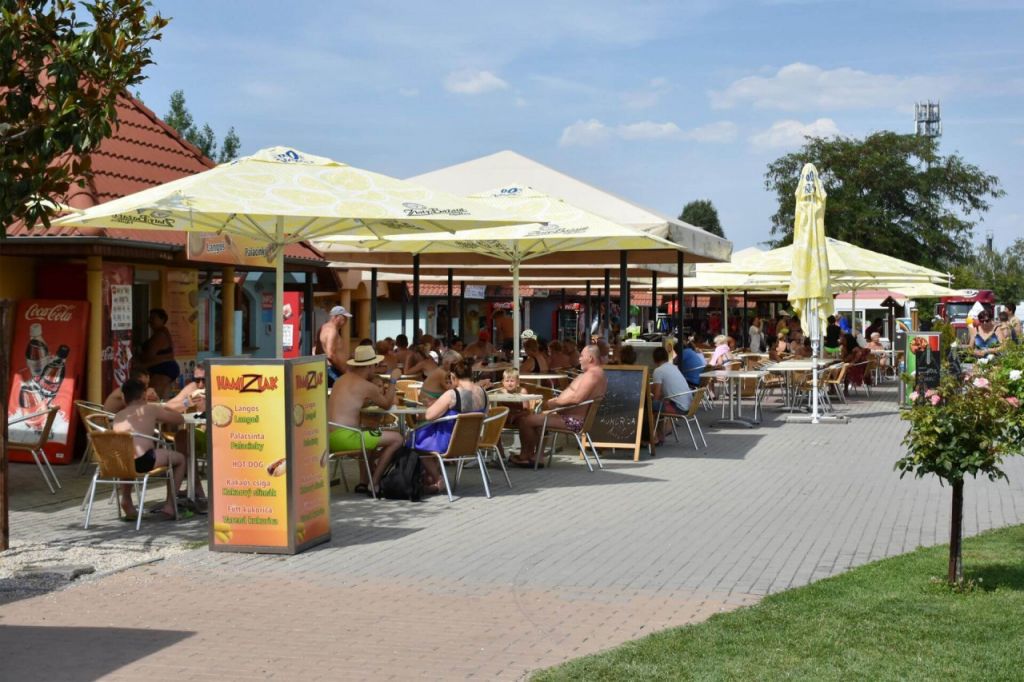 V lázních je samobslužná jídelna s domácí kuchyní. Po nedávné rekonstrukci byla přebudována vstupní budova, šatny nabraly na kapacitě a také byla otevřena velká mokrá kavárna s velkým posezením. V těchto vnitřních zařízeních je možné platit i platební kartou. Na venkovní ploše je větší množství stánků s občerstvením. V termínu našeho zájezdu ještě budou některé v provozu. Zde se však převážně platí hotově, karty jsou přijímány jen zcela výjimečně.